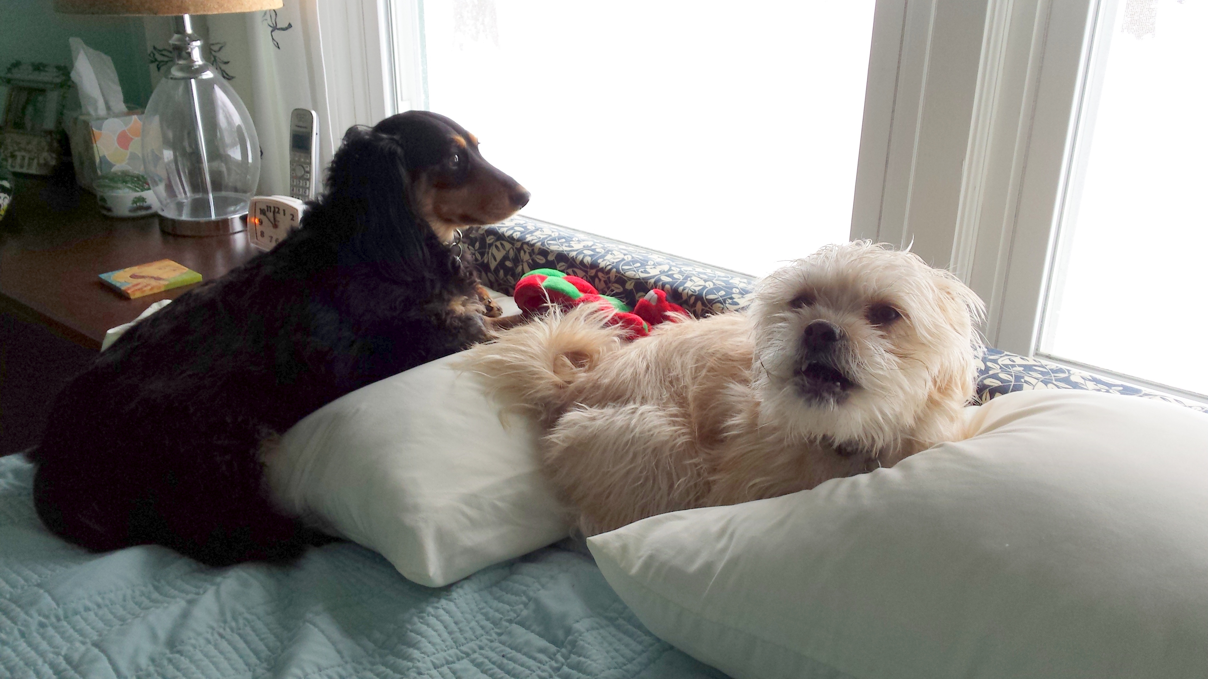 Here they are. Looking out the window on my bed.