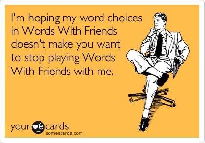 What prompted this confession? Well, when my son Chris was home he suggested that we could play Words with Friends together after he returned to Australia. Since I am happy for any reason to connect with my darling boy, I agreed. Before I knew it, we were on the virtual Scrabble board together and at the same time, I had also agreed to a request to play from my friend Ann.